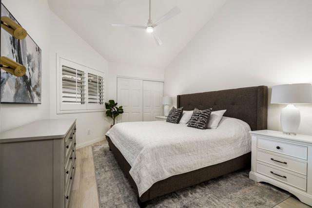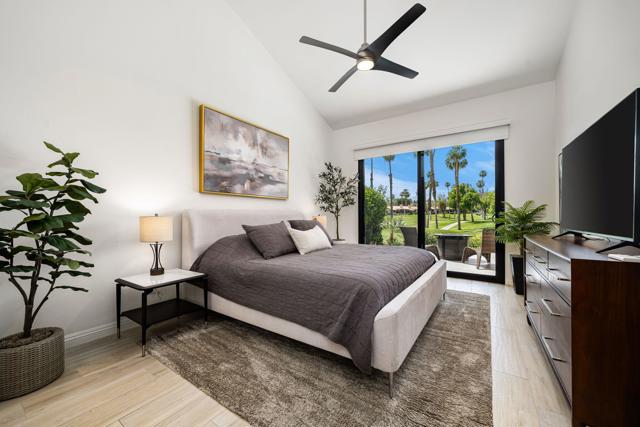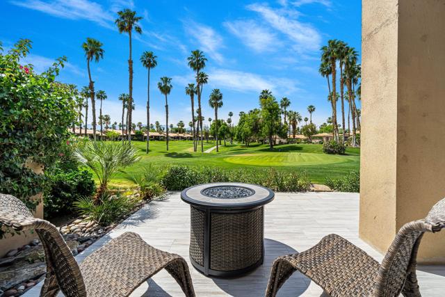 Stunning Furnished Golf Course Condo in Palm Valley Country Club! Beautifully updated and move-in ready furnished home located on the #12 Challenge Course in highly desirable Palm Desert. This sought-after Palm Plan offers 2 bedrooms, 2 ensuite baths, and a flexible den/office, with ideal separation for privacy. Enjoy west-facing golf course and mountain views from the expanded and tiled patio - perfect for relaxing days and sunset entertaining. The gated courtyard entry features upgraded pavers, a new front door, and new windows, while fresh interior paint throughout the home and garage creates a bright, modern feel. Inside, this renovated golf course home includes tile throughout, newer A/C and heat pump, water heater, and new sliding doors that open seamlessly to outdoor living. The redesigned kitchen showcases quartz countertops, updated backsplash, new sink, faucet, disposal, and newer appliances, complemented by modern lighting. The open-concept living and dining areas feature high ceilings, motorized window shades, updated lighting, a stacked stone fireplace, custom built-ins, and a wet bar. Additional upgrades include custom closet systems, renovated bathrooms with updated showers and fixtures, new toilets, ceiling fans, lighting throughout, and a laundry room with newer LG washer/dryer. The garage features epoxy flooring for a clean, finished look. Located in one of the desert's premier communities, Palm Valley Country Club offers two Ted Robinson-designed golf courses, fitness center & spa, tennis, pickleball, and 46 pools & spas. HOA includes social membership, guard-gated security, cable/internet, exterior maintenance, roof, landscaping, and trash. Short-term rentals allowed (28 days or less) with City of Palm Desert permit, making this an excellent investment property, seasonal rental, or full-time residence.