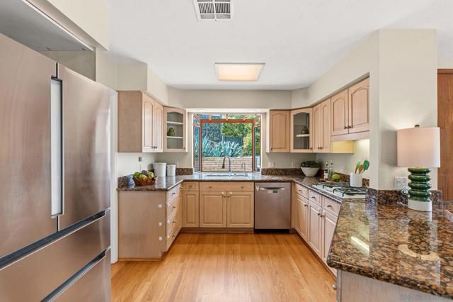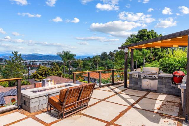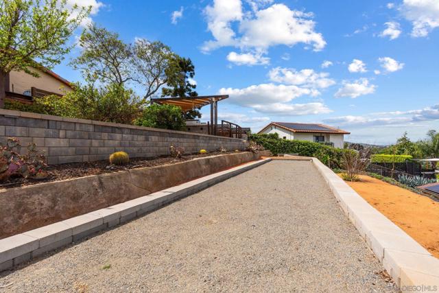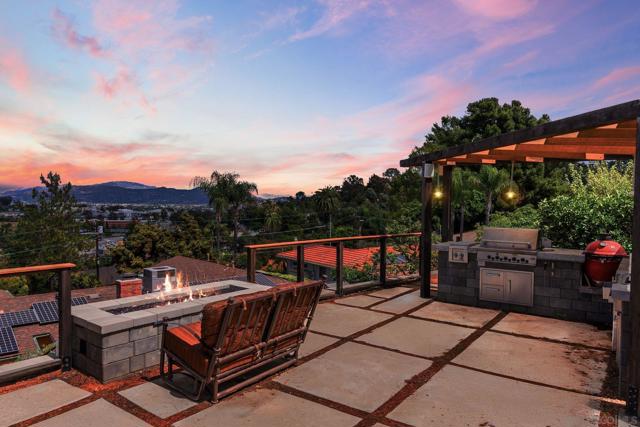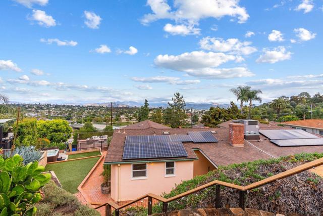 Situated on a spacious 1/3-acre lot, this 3-bedroom, 2-bath owned solar residence offers 1,621 sq ft of comfortable living with a seamless blend of original charm and modern upgrades. Enjoy panoramic east-facing views of El Capitan from multiple outdoor living spaces, including a rooftop deck above the 2-car garage—perfect for sunrise coffee or evening relaxation. The low-maintenance landscape features mature fruit trees and thoughtfully designed entertaining areas. Inside, the home boasts hardwood floors, a cozy fireplace in the living room, and a versatile layout with a combined living and dining area plus a separate family room. The primary suite includes custom closet built-ins for added functionality. Step outside to your private backyard retreat complete with an outdoor kitchen, custom BBQ grill station, firepit, horseshoe court, and jacuzzi spa—ideal for entertaining or unwinding under the stars. Additional highlights include owned solar and expansive covered front and back patios for year-round enjoyment. A rare opportunity to own a view property with space, style, and comfort in one of East County’s most sought-after neighborhoods.