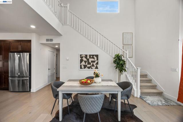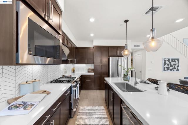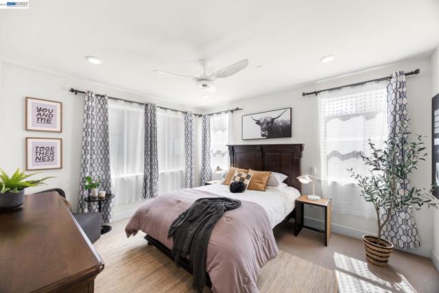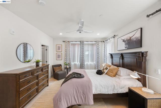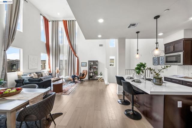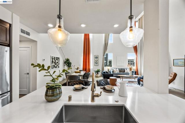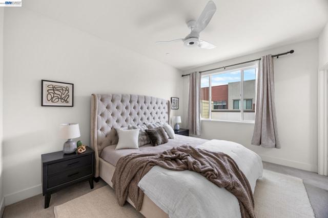 Welcome to this beautifully designed townhome in Fremont’s highly sought-after Innovation Community. Offering 2,169 square feet of thoughtfully designed living space, this residence features soaring ceilings, expansive windows, and a bright open-concept layout that creates a spacious and inviting atmosphere. This home offers three generously sized bedrooms and three full bathrooms, providing flexibility for modern living, guests, or a home office. The main living area flows seamlessly into the dining and kitchen spaces, creating an ideal setting for both everyday living and entertaining. A custom walk-in closet and abundant storage throughout enhance the home’s functionality and comfort. Additional highlights include a 2-car tandem garage with EV charger, in-unit washer and dryer, and major appliances included. Select furnishings may also remain with the home, including window coverings, lighting, cabinetry, and select furniture pieces. Located within walking distance to top-rated Lila Bringhurst Elementary (10/10), nearby parks, and Warm Springs BART, this home offers exceptional convenience for commuters with quick access to I-880, I-680, and major Silicon Valley employers. Just minutes from Fremont Auto Mall, shopping, dining, and everyday amenities.