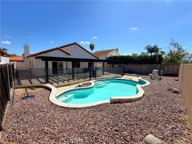Welcome to this beautifully updated 3-bedroom, 2-bathroom pool home in the desirable city of Murrieta! This inviting home features fresh interior and exterior paint, refreshed landscaping, new carpet, a reglazed shower enclosure, and a recently serviced AC—making it truly move-in ready. Step inside to a bright living and dining room with a cozy fireplace, perfect for relaxing or entertaining. The home also offers a separate family room that flows seamlessly into the kitchen. The kitchen is well-appointed with tile flooring, newer-style cabinetry, updated countertops, and modern appliances, providing both functionality and style. Down the hall, you’ll find the spacious bedrooms and bathrooms, including a primary suite with a walk-in closet and an attached bathroom featuring dual sinks. Step outside to your private backyard oasis, complete with an in-ground pool, covered patio, and plenty of space for entertaining or enjoying sunny California days. Additional highlights include an attached two-car garage and a driveway for added convenience. This home offers the perfect blend of comfort, updates, and outdoor living—don’t miss this opportunity!