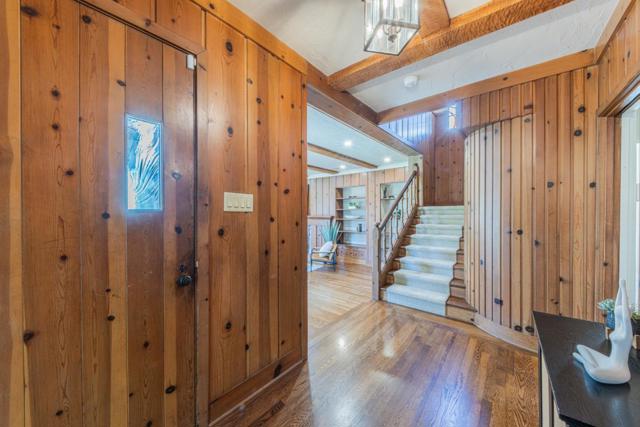 Experience refined living in this beautifully upgraded residence designed for both comfort and elevated entertaining. The resort-style backyard features a resurfaced Pebble Tec pool, new pump and boiler, spa, and a covered outdoor lounge with integrated heaters, lighting, and TV connections. Inside, timeless finishes include rich hardwood floors, fresh designer paint, custom lighting, and plantation shutters throughout. The home is enhanced with a fully integrated indoor/outdoor sound system, advanced security, and smart home features. Additional highlights include a wine cellar, lush grounds with mature fruit trees, elegant stained glass accents, and a well-appointed basement with full laundry amenities. Pool equipment stored on the side of the garage.