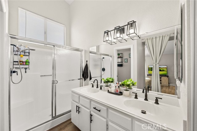Beautifully Updated Single-Story Home with Modern Touches and a Bright, Open Floor Plan. Welcome to this stunning single-story home that perfectly combines comfort, style, and functionality. From the moment you step inside, you’ll love the bright and airy atmosphere created by high ceilings, large windows, and an open living space that’s ideal for family gatherings and everyday living. The modern kitchen has been tastefully updated with white cabinetry, sleek quartz countertops, stainless steel appliances, and contemporary black hardware. Whether you’re preparing a family meal or entertaining guests, this kitchen is both beautiful and practical. The spacious living room offers an inviting space filled with natural light, featuring neutral tones that make decorating effortless. The primary suite includes a private bathroom with dual sinks, upgraded fixtures, and a large walk-in shower, providing a peaceful retreat at the end of the day. Located in a quiet and established neighborhood, this home offers easy access to schools, parks, shopping centers, and major highways, making daily commutes and errands a breeze.