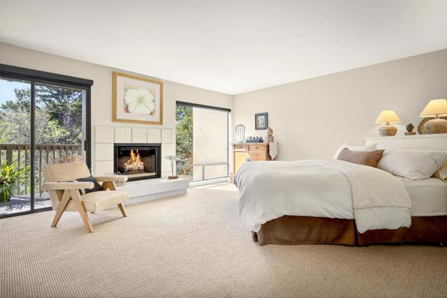 Tucked within the intimate Villa Via Joaquin community in the heart of downtown Monterey, this home offers a rare sense of privacy just moments from the area's best dining, shopping, and waterfront. This 2-bedroom, 2.5-bath residence spans approximately 1,591 square feet and features a reverse living floor plan that elevates the everyday. Upstairs, vaulted ceilings and expansive windows fill the living space with natural light while framing serene, forested ravine views. A gas fireplace anchors the room, and the open kitchen with high-end appliances is designed for effortless entertaining. Two private decks extend the living space outdoors, offering a quiet place to take in the surrounding greenery. Downstairs, both bedrooms are ensuite, including a spacious primary suite with dual vanities, an oversized walk-in shower, and its own fireplace, a rare and inviting feature at this price point. The guest suite opens to a private patio, creating a comfortable retreat for visitors. Set within a boutique 15-unit gated community, residents enjoy a sunlit central courtyard with fountain, providing a peaceful contrast to the energy of downtown just beyond. A refined take on downtown living, where privacy, light, and location come together with ease.