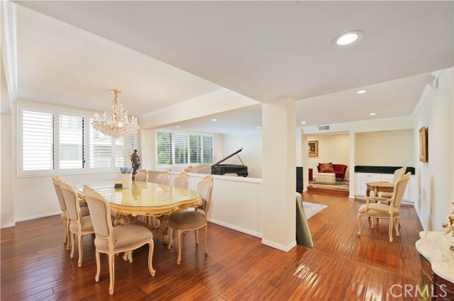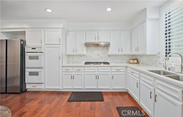Welcome to this spectacular and expansive residence, beautifully appointed with gleaming wood floors, abundant natural light, and the rare advantage of no shared walls. The thoughtfully updated kitchen is designed to impress, featuring stainless steel appliances, custom cabinetry, quartz countertops, and an elegant marble backsplash. Ideal for both everyday living and entertaining, the open and versatile floor plan offers a grand formal dining room, a sophisticated living room anchored by a central fireplace, and a separate den perfect for a home office or media space. The home includes two generously sized bedrooms, highlighted by a luxurious primary suite with both wardrobe and walk-in closets, a comfortable sitting area, and a private spa-inspired bath complete with a dual-sink vanity, soaking tub, and separate shower. Additional amenities include in-unit laundry, side-by-side parking, and access to a beautifully maintained community offering a sparkling pool and spa, clubhouse, fitness center, and secure entry. Ideally located on a quiet, tree-lined street just moments from premier Ventura Boulevard shops and dining—this is truly a place to call home.
