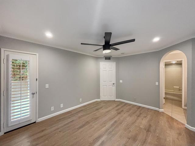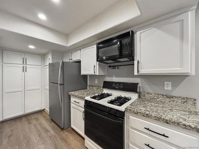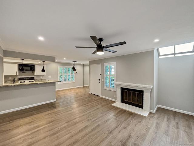 Welcome to 6025 Estelle St #4, a beautifully updated 2-bedroom, 2-bath single-level end-unit townhome in the vibrant El Cerrito / College Area—just minutes from SDSU, College Ave, and local shops, cafés, and conveniences. Step inside to discover bright, open-concept living w/ an inviting white-brick fireplace, recessed lighting, newer flooring throughout, & large windows that flood the space w/ natural light, highlighting the home’s clean, contemporary aesthetic. The updated kitchen is a true standout with solid stone counters, under mount sink, a built-in wine fridge, and plenty of prep and storage space. The seamless flow from kitchen to dining are & living room makes entertaining effortless. Both bedrooms are generously sized retreats, each offering mirrored closet doors for a polished look & excellent storage. The two full bathrooms provide comfort & convenience for roommates, guests, or a work-from-home setup. Enjoy year-round comfort with central A/C & heat, plus ceiling fans throughout for added airflow and ambiance. The home also features faux wood shutters for style & privacy, & solar to help keep electric bills low. Slide open the door to your private balcony off the master bedroom. In-unit washer and dryer add everyday convenience, and the spacious 2-car garage provides secure parking plus extra room for storage. Located near College Ave, with easy access to SDSU, Crawford High School, and commuter routes, this home hits the sweet spot of style, practicality, and location—ideal for first-time buyers, downsizers, or investors seeking a high-demand rental.