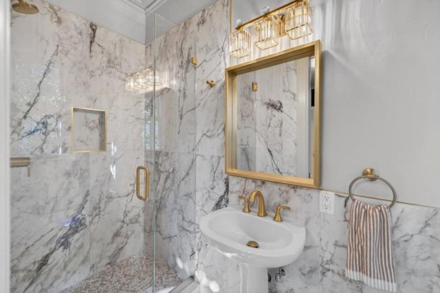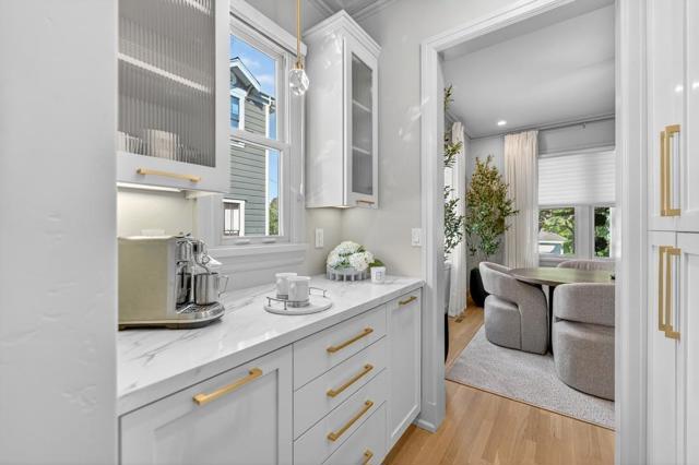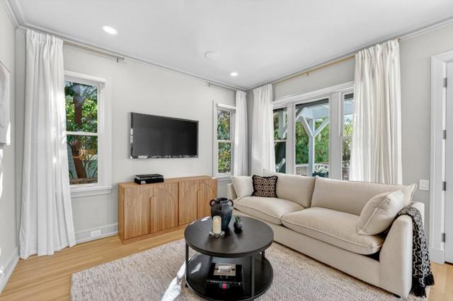 Quintessential tree-lined street in the heart of downtown Los Gatos. This stunning Victorian has been completely reimagined from top to bottom, blending timeless architecture with a fresh, modern feel. Newly updated front and rear landscaping create an inviting first impression, while inside, every detail has been thoughtfully curated. The showpiece kitchen is both elegant and functional, featuring custom white cabinetry with quartzite countertops and professional-grade Viking appliances. A dedicated butler's pantry seamlessly connects to the formal dining room. The main level offers a versatile ensuite bedroom, currently styled as an office. Upstairs, the primary suite feels like a private retreat, complete with a spa-inspired walk-in shower and dual vanity. Two additional spacious bedrooms, a beautifully remodeled full bath, and a conveniently located laundry room complete the upper level. The finished lower level offers incredible flexibility, with a second living area, 5th bedroom, a bonus room, and a full bath, perfect for guests or extended family. Smart home features include Alexa-enabled controls, Sonos, and smart thermostats. Approved plans for an ADU above the detached two-car garage offer exceptional future potential and added value.