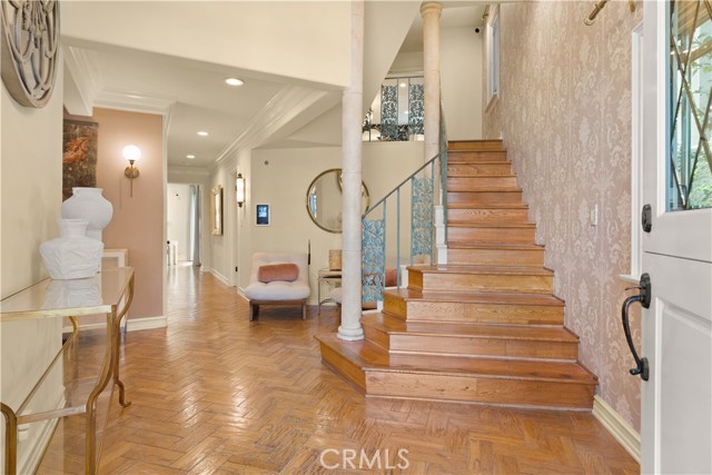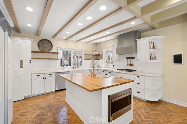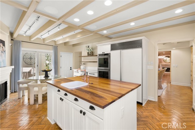 Experience refined coastal living in this exquisite French Provincial tri-level home, ideally positioned in exclusive Naples Island of Long Beach. Just steps from the scenic waterways and moments from world-class dining, this beautifully appointed residence offers timeless elegance with flexible furnishing options to suit your lifestyle. The first level welcomes you with a grand entry that opens to a formal living room featuring soaring vaulted ceilings, a fireplace, and a wet bar, perfect for entertaining your guests. The formal dining room showcases a stunning coffered ceiling with decorative floral inlays, and a stunning chandelier adding a touch of sophistication. A spacious eat-in kitchen anchors the rear of the home, complete with a large center island and prep sink, full suite of appliances, and direct access to a private patio with built-in BBQ, ideal for alfresco dining. A guest powder room, indoor laundry, and direct-access two-car garage complete this level. The second level offers three bedrooms and a large family/media room with its own wet bar and wine refrigerator. One of the bedrooms features an en suite bath, while another versatile space toward the rear adapts beautifully as a private bedroom, executive home office, or personal fitness studio, perfect for today's flexible lifestyle. A second full bath serves the remaining rooms. Ascending to the third level, you'll find the primary suite, a serene retreat featuring a fireplace, walk-in closet, and a newly remodeled spa-inspired bath with floor-to-ceiling tile, a floating vanity, modern fixtures, and an expansive dual-head walk-in shower. The entire suite is designed for privacy and comfort, separated from the rest of the home. A few steps above the primary suite leads to the rooftop deck, an entertainer's dream with panoramic 360º views of Naples Island, comfortable patio seating, and a gas fire pit that is perfect for sunset gatherings or evening relaxation. This exceptional home combines timeless European charm with modern amenities, all within Naples Island's coveted waterfront enclave, one of Southern California's most distinguished residential communities.