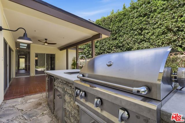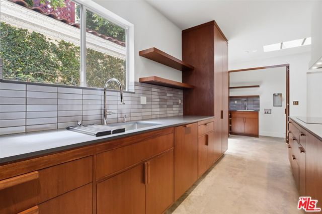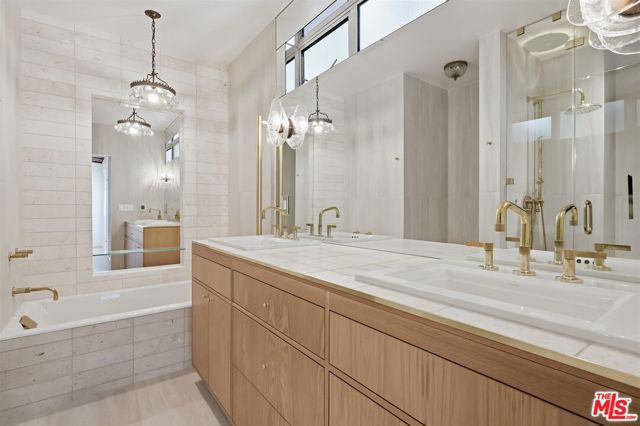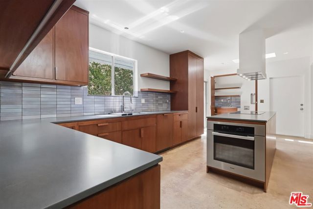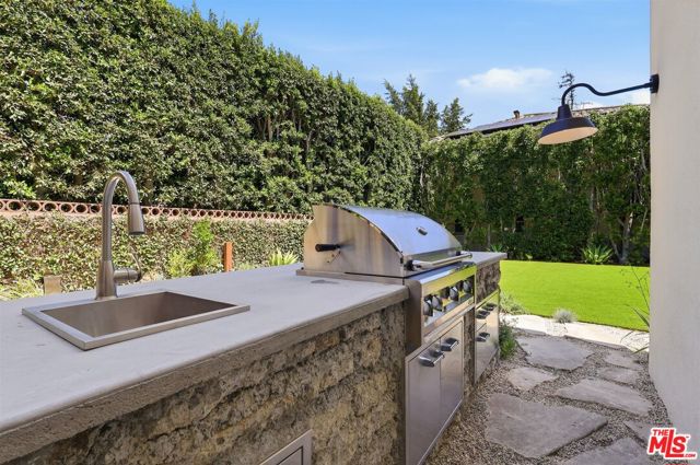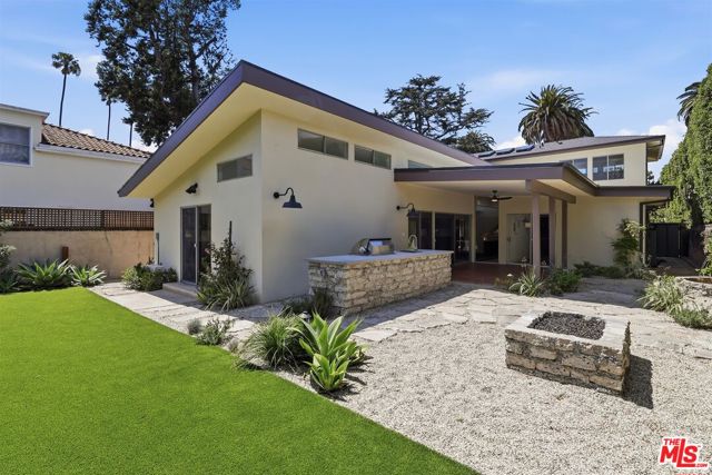 Experience elevated modern living in the prestigious Windsor Square neighborhood of Los Angeles. This stunning two-story home has undergone a beautiful renovation, blending sleek contemporary design with warm natural materials for a light-filled, inviting retreat. Step into the expansive open-concept living area on the main level, where rich hardwood floors flow throughout and soaring high ceilings with dramatic clerestory windows create an airy, spacious feel. The massive living room is perfect for relaxing or entertaining, featuring large windows that flood the space with natural light and a cozy fireplace as a focal point. The heart of the home is the epicurean chef's kitchen, showcasing rich wood cabinetry, sleek updated countertops, and premium appliances. It includes a Miele electric oven, induction cooktop with stylish vent hood, dishwasher, and a Sub-Zero refrigerator seamlessly built into the cabinetry. A generous island provides ample prep and gathering space, while the adjacent dining area opens seamlessly to the outdoors. The first floor offers 3 bedrooms and 3 bathrooms, providing flexible living options with modern finishes. Upstairs, discover 2 additional bedrooms and 2 bathrooms, completing this rare 5-bedroom, 5-bathroom residence ideal for families, professionals, or multigenerational living. Outside, the large private yard and extended patio create an oasis for year-round enjoyment. Relax or entertain amid the built-in barbecue, soothing fountain, and lush landscaping that frames the serene green space. Floor-to-ceiling glass doors blur the line between indoor and outdoor living, bringing the garden views and fresh air right into the home. Additional highlights include abundant natural light from multiple high windows, elegant wood accents throughout, and a thoughtful layout that maximizes both privacy and flow. Located in one of Los Angeles' most desirable historic enclaves, this renovated gem offers modern comfort in a tranquil, tree-lined setting just moments from Larchmont Village, shops, dining, and major thoroughfares. This is a rare opportunity to lease a fully updated, light-drenched modern home with exceptional indoor-outdoor living in Windsor Square.