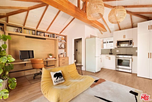 Beautifully updated 4-bedroom, 2-bathroom home plus ADU in the heart of Mar Vista. The main house offers a bright, open floor plan where the living room, anchored by a fireplace, flows into the dining area and kitchen, appointed a Wolf range, with wood flooring throughout. Bedrooms are set along a private hallway, including a generous primary suite with ensuite bath, two additional bedrooms, and a versatile room with French doors to the garden, ideal as a fourth bedroom or office. Outside, mature hedges create privacy, while the landscaped yard features a pergola, built-in heaters, and bistro lights, perfect for outdoor dining and entertaining. The ADU is a standout, designer-finished with its own kitchen, bathroom, and Murphy bed. Large detached storage shed. Ideally located near 310 Coffee Company, the Mar Vista Farmers Market, and the shops and restaurants along Washington Blvd, with easy access to the Ballona Bike Path, Venice, Marina del Rey, and the beach. **Select photos are from a prior listing and may not reflect the property exactly as currently shown**. 13-month minimum lease term.