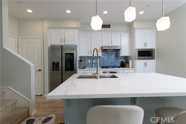 Welcome to Aliso Viejo! Three bedrooms, two and a half bathrooms including a powder restroom downstairs. Luxury vinyl plank throughout downstair. Open kitchen with beautiful island kitchen complete with stone countertops. Primary bedroom upstairs with remodeled ensuite restroom and updated shower and tub. Washer, dryer, and level 2 charge point in garage included without warranty. Pets considered with pet rent.