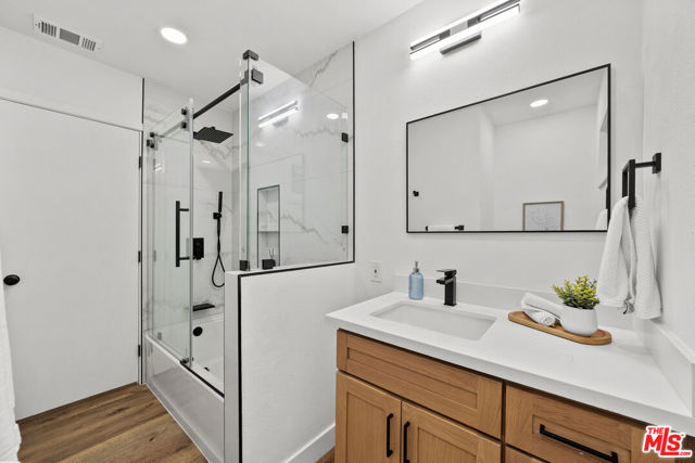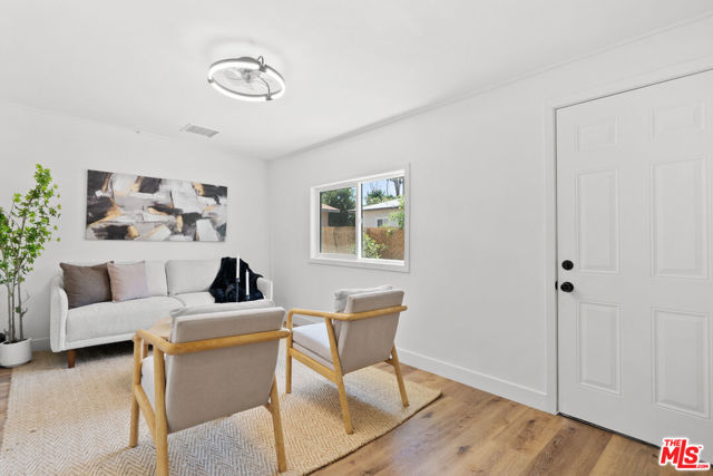 Welcome to your refreshed and redone, move-in-ready modern masterpiece! Set behind a fully gated, sprawling corner lot in Van Nuys, this turnkey property offers unmatched privacy and an exceptionally functional design suited for any lifestyle. Step inside to discover a bright, open-concept layout anchored by a spectacular, fully remodeled kitchen. Whether you love hosting grand events or enjoying quiet evenings at home, you will instantly appreciate the gleaming quartz waterfall island, premium stainless steel appliances, and custom cabinetry equipped with smart built-in USB outlets. This vibrant space flows seamlessly into the formal dining area, beautifully unified by brand-new waterproof vinyl flooring, elegant recessed lighting, and sleek modern fans that enhance the home's fresh, contemporary aesthetic. The versatile floor plan features an incredible private primary suite that serves as your personal everyday sanctuary. This exclusive retreat boasts a luxurious, spa-inspired en suite bathroom and an attached bonus flex space perfect for a private home office, a sprawling walk-in closet, a nursery, or a cozy reading nook. You will find two additional generously sized bedrooms alongside a completely renovated guest bathroom. Elevating the home's adaptability, the layout also includes a separate, flexible bonus room ideal for a creative studio, media room, a fourth bedroom or an office area, making remote work or pursuing your personal passions an absolute breeze. Step outside to discover your own tranquil, tree-canopied oasis. Multiple lounge areas scattered across the expansive front and back yards make al fresco dining and outdoor entertaining magical under thoughtful dusk-to-dawn lighting. The home radiates instant curb appeal from the street with a freshly painted exterior, an attached 2 car garage w/ new modern door, and a newly paved, fully gated driveway offering abundant parking for multiple vehicles. You can enjoy total peace of mind knowing every major system has already been upgraded: a newer central HVAC with a Nest thermostat, double-pane tinted windows, a newer shingle roof, updated plumbing, and a brand-new 200-AMP electrical panel. Maximizing the property's incredible value, the garage is perfectly primed for a rapid ADU conversion. Already outfitted with new drywall, fresh paint, sensor lighting, an epoxy floor, it is ready to be transformed into a private guesthouse, a multi-generational living space, or an income-producing rental. Don't let this stunning turnkey Van Nuys gem slip away!
