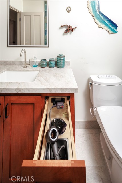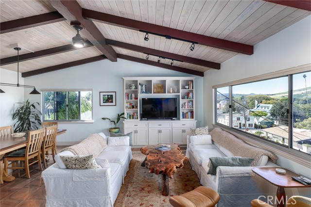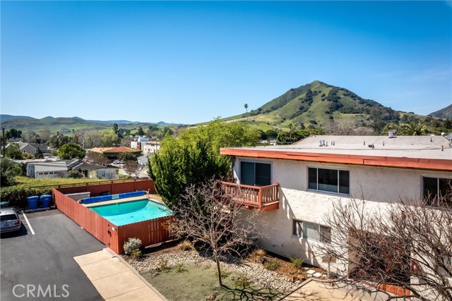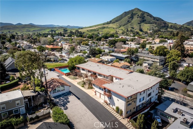Luxury living in downtown SLO that is walkable, bikeable and has views for miles. A sanctuary in the sky, this 2-bedroom, 2-bath, 1,200-sf unit features creature comforts galore. The luxury dwelling boasts open-concept living with panoramic windows and sweeping views of Cerro San Luis and the treetops of downtown SLO. The views and in-town location are topped only by the unit’s amenities. Cathedral ceilings with redwood beams add vertical dimension to the home's expansive Great Room. A studs-up 2023 remodel orchestrated by Honeycomb Design boasts an open-concept floor plan and designer kitchen with center island featuring seating for 5. No expense was spared on this recent remodel, including Bosch and GE Profile appliances; custom cabinetry; leathered Taj Mahal stone counters; Rohl/Shaws hand-crafted apron-front sink with filtered water and on-demand hot water; Carrara marble backsplash; and under-cabinet lighting. Schluter radiant floor heating, with dedicated controls in each room. Both bathrooms have Toto bidet toilets and Madeli lighted bathroom mirrors; the primary bath has H|S deep tub and a niche with outlet; the second bath features a Mr. Steam shower with infinity drain, seamless shower door, and custom cabinets with integrated electric outlets for personal appliance storage. Additional features include a device charging drawer, GE all-in-one washer/dryer that uses heat pump technology, smart home front door lock, and smart radiant heating systems. Top-down/bottom-up blinds maximize views and privacy; hand-textured smooth drywall; ceiling fans and recessed lighting complete the unit. From top to bottom, luxurious, convenient, and care-free condo/co-op living. The location offers everything there is to love about small-town living, with the amenities more commonly found in the big city. At the corner of Morro and Pismo, 1415 Morro is one block from Mitchell Park, and a short walk to the Downtown Cinema, Farmers Market, SLO’s best restaurants, museums, and historic Railroad Square, putting the SLO Life at your fingertips. Or jump on your bike and you can get to SLO’s many other parks and amenities via SLO’s greenways and bike paths. This 17-unit community makes for great living with a pool; one-car garage with storage, plus added parking; and wonderful neighbors. Easy lock-and-leave living for frequent travelers, second-home owners, and Cal Poly parents.