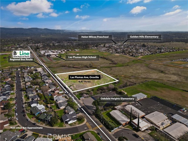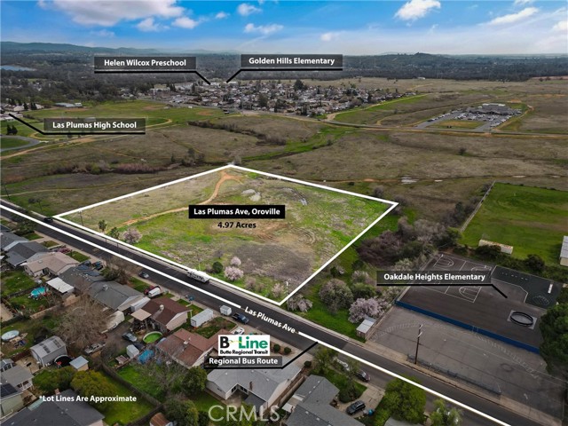 OWNER MAY FINANCE! Land Development Potential – Prime MDR-Zoned 4.97+/- Acres in the Path of Growth Don’t miss this rare opportunity to secure nearly 5 acres of land perfectly positioned in the path of ongoing development. Zoned MDR (Medium Density Residential), this property allows a minimum of 6,000+ sq. ft. residential building lots and supports a range of housing types including single-family homes, duplexes, and second units. All essential utilities—power, sewer, water, phone, and internet—are conveniently located at the street and ready to connect, making this an excellent candidate for a new residential subdivision or community project. The location is unbeatable, situated directly next to Oakdale Heights Elementary School, just a parcel away from Las Plumas High School, and within close proximity to Golden Hills Elementary and Helen Wilcox Preschool. The land itself is mostly flat with a gentle roll, offering easy development potential. It’s also located along the B-Line public bus route, providing convenient transportation access. Nearby, ground has already broken on a new housing development, further highlighting the growth and opportunity in this area. MDR zoning supports medium-density residential living while also allowing for various conditional uses such as residential care facilities, daycare centers, clinics, community centers, schools (public or private), and small-scale retail or professional offices. The maximum permitted residential density is six dwelling units per acre. With its prime location, available utilities, and flexible zoning, this property offers an exceptional opportunity for builders, investors, or developers to bring their vision to life in one of Butte County’s most promising growth areas. Assessor Parcel Number: 078-170-045. For more details or to discuss your development ideas, contact Butte County Building & Planning/Public Works. OWNER MAY FINANCE WITH LARGE DOWN, INQUIRE FOR DETAILS.