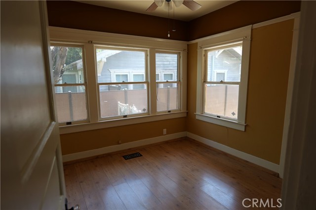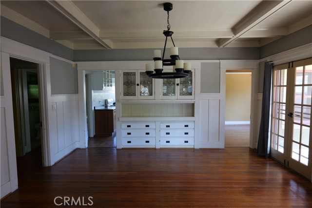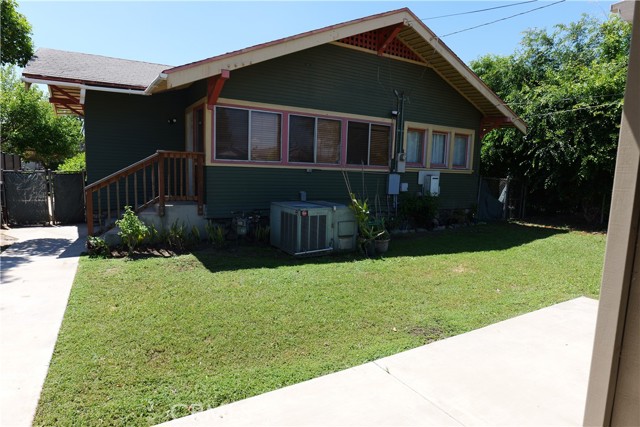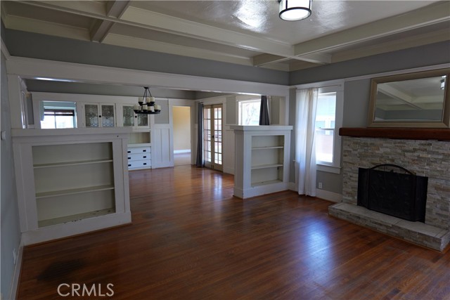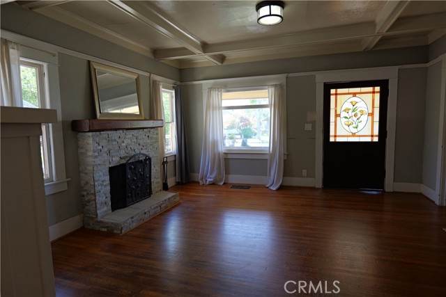 Charming single-level vintage Craftsman home for lease located in the historic Lincoln Park area of Pomona. This character-rich residence welcomes you with a spacious front porch accented by river rock, drought-tolerant landscaping, and a stunning front door featuring decorative stained glass. Inside, the living room showcases a beautiful stone fireplace with a wood beam mantel, decorative coffered ceilings, built-ins, and original hardwood floors. The layout flows seamlessly into the dining room, highlighted by matching coffered ceilings and a classic built-in china cabinet—perfect for entertaining. The spacious kitchen offers ample cabinetry and counter space with warm wood finishes, providing both functionality and charm. The remodeled bathroom features a marble-top vanity and a tub/shower combination enhanced with stylish subway tile. This home offers four generously sized bedrooms, forced air heating and air conditioning, and an abundance of windows that fill the interior with natural light. Additional features inc a detached garage with gated parking and a private rear yard complete with lawn area and a covered patio featuring a vinyl roof, ceiling fan, and added lighting—ideal for outdoor relaxation. A convenient location near to schools, park, shopping, dining and easy commuter access. A rare opportunity to lease a historic Craftsman home with timeless character and modern comforts in one of Pomona’s most desirable neighborhoods.