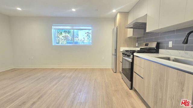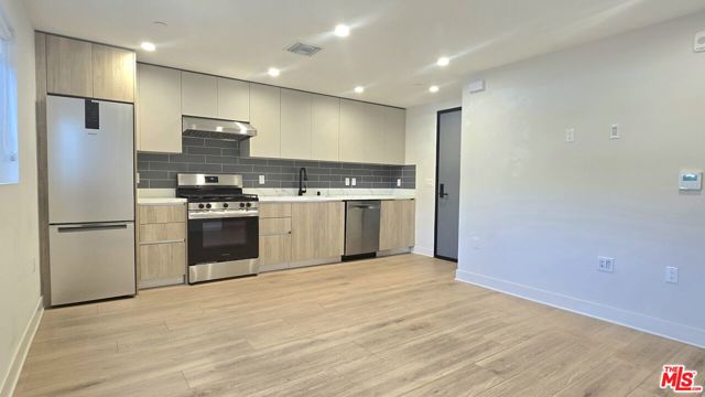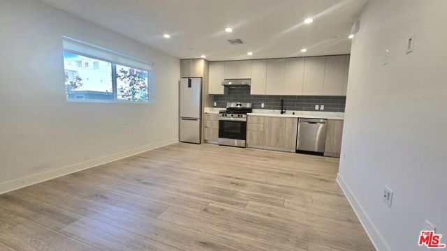 Modern 1-bedroom unit with a private patio. Bright and open space living area. Modern kitchen with custom-built cabinetry and stainless steel appliances. Central heating/AC. In unit washer/dryer. One parking space included. Located in a recently built (2025) complex near Picfair Village and Beverlywood. Close to restaurants and other retail stores. Easy access to the I-10 for commuting. Available for immediate move in.