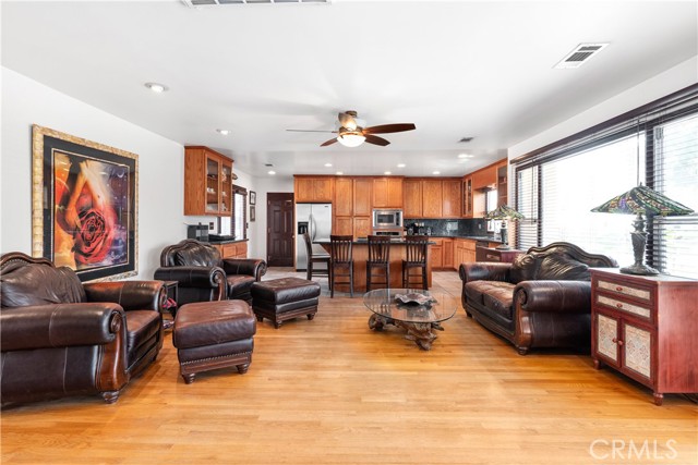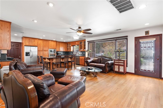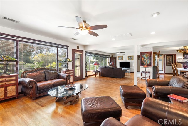 Charming mid-century ranch home located in the desirable Victoria-area pocket of Riverside, just minutes from University of California Riverside, Polytechnic High School, downtown Riverside, and the iconic Mission Inn Hotel & Spa. This home offers an open layout with connected living, dining, and family areas, solid wood oak flooring, abundant natural light, and a fireplace. The kitchen features upgraded custom red oak cabinetry, granite countertops, a center island with built-in gas range, and stainless steel appliances, ideal for everyday living and entertaining. The oversized fully-permitted primary suite includes a walk-in closet, luxury sunken tub, and a separate tiled shower. Additional features include a tankless water heater, water softener system, and energy-efficient utilities through Riverside Public. The expansive back yard lot is well-maintained with mature citrus trees, irrigation, and hardscape, offering plenty of room for outdoor living. The front yard includes established landscaping, a horseshoe driveway, and a pull-through garage as an added feature. Situated near the prestigious Victoria Club and backing to Bordwell Park, this home offers added privacy and access to open space. Conveniently located near top-rated schools, shopping, dining and easy freeway access, all within a well-established Riverside neighborhood.