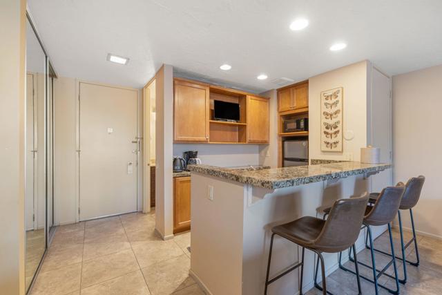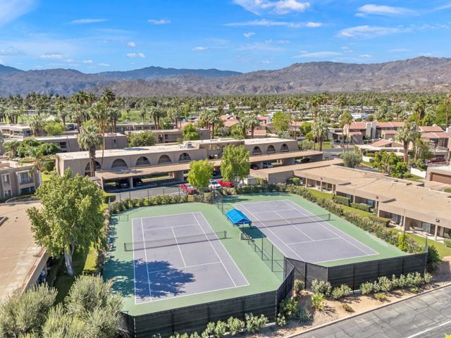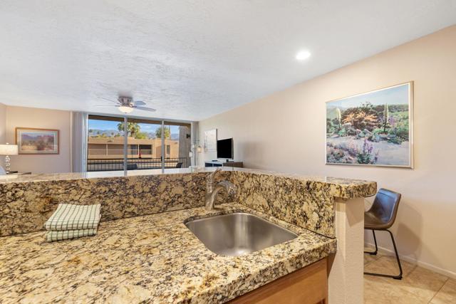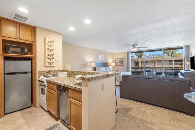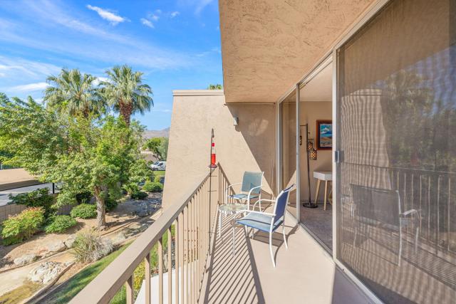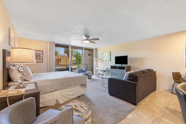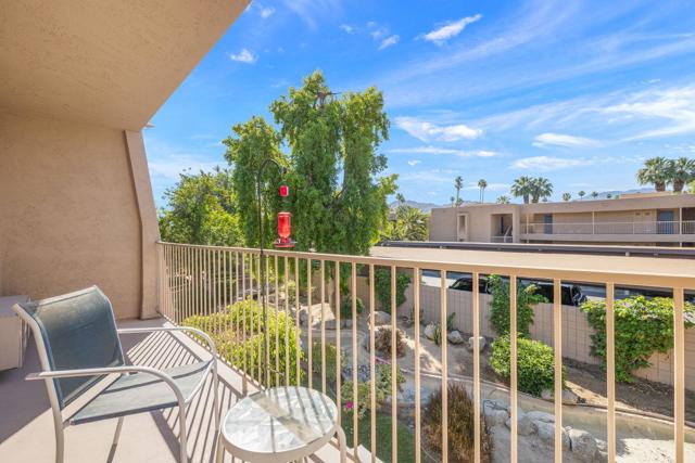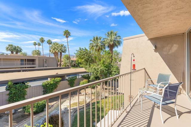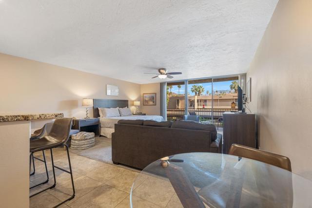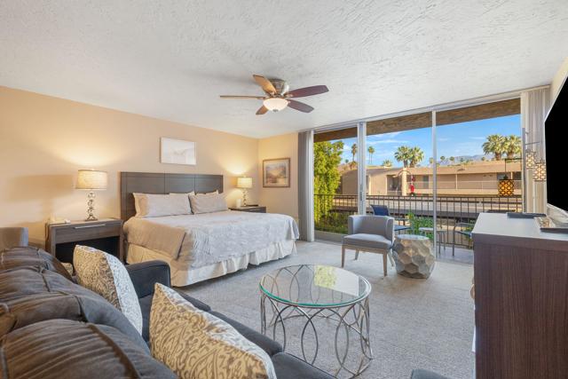 Short-term rental income potential defines this rare creekside studio unit at the Historic Shadow Mountain Resort, offering a strong investment opportunity in the heart of South Palm Desert. Unit 296 is a larger upper-level studio with an open layout, generous living space, and a private balcony overlooking the peaceful creek with mountain views. Offered fully furnished and turnkey, this desert retreat is ready for immediate enjoyment as a weekend escape, seasonal residence, full-time home, or income-producing asset. The remodeled interior lives comfortably with easy flow, inviting natural light, and a layout that feels both functional and relaxed. Shadow Mountain Resort is a gated community known for lush grounds, a classic resort setting, and a prime location near El Paseo, the Rodeo Drive of the Coachella Valley, dining, shopping, galleries, golf, and hiking. HOA coverage includes all utilities, cable TV, and internet, creating exceptional convenience and value. Owners enjoy community pools, spa areas, guest parking, assigned covered parking, and additional resort membership options for pickleball, tennis, fitness, pool, spa, and more. Creekside ambiance, upper-level privacy, and a sought-after Palm Desert address make this a coveted lock-and-leave desert base or rental asset.
