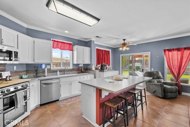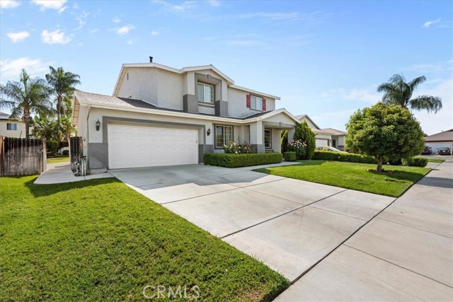 Turn-key perfection in a prime Hemet neighborhood near top-rated schools! This move-in ready home features a highly desirable downstairs bedroom, a stunning kitchen with a large island perfect for entertaining, and a covered backyard patio ideal for relaxing on warm summer days. Upstairs, enjoy a spacious loft, convenient laundry room, and a luxurious primary suite with dual walk-in closets and double sinks. Sitting on a huge front and backyard, this home offers space, comfort, and style—ready for you to fall in love the moment you walk in.