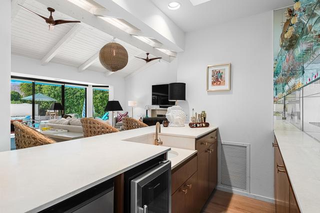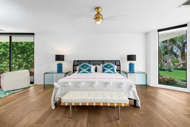 This beautifully reimagined freestanding residence offers 3,229 square feet, featuring three spacious bedrooms and four baths, thoughtfully designed for both privacy and effortless indoor-outdoor living.From the moment you enter the courtyard, you're welcomed by a bright double-door entry that opens to curated living spaces flowing seamlessly throughout. Soaring vaulted ceilings with architectural beam detail and abundant natural light create a striking first impression, offering a beautifully finished space that's truly move-in ready and waiting to be enjoyed.Walls of glass frame serene lake and greenbelt views from the north-facing patio and primary suite, while the private pool and spa showcase sweeping south-facing mountain vistas--ideal for relaxing or entertaining under the desert sky.Additional highlights include a wet bar, island kitchen, formal and casual dining areas, and an attached two-car plus golf-cart garage with direct home access.The spacious primary retreat features dual bathrooms, custom closet space, and a flexible area for a home office or lounge. Nearly every room connects to the outdoors, enhancing the indoor-outdoor lifestyle.Located in The Club at Morningside, one of Rancho Mirage's most coveted guard-gated communities, residents enjoy 24-hour security and a premier golf course setting.A rare opportunity to own a light-filled, view-oriented home in an iconic location--schedule your private showing and experience Morningside living at its finest.