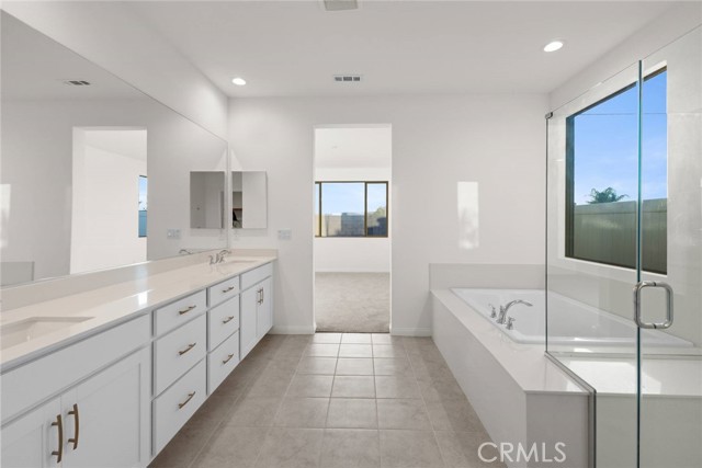 Come, check out this exquisite Highland Grove gated community home by Pulte. This stunning 2 floor, 5 bedroom home offering 4 bathrooms, is available for purchase at a very attractive price. Quality, comfort, space and flexibility at its finest. A thoughtful and inviting open floor plan features a full primary suite on the first floor plus a second guest bedroom coupled with a full bath. Other highlights on the first floor include an upgraded kitchen, showcasing quartz countertops, recessed lighting, KitchenAid stainless steel appliances, and a huge walk-in pantry. This home boasts an additional three bedrooms, a Jack-and-Jill bathroom, and a large open loft that could be set up as an entertainment area or as an office space. Located in a beautiful cul-de-sac, this home is ideal for a big family that loves to entertain especially considering the spacious back yard and covered patio. The 3-car tandem garage coupled with an expansive front yard is worth appreciation. This home has never been lived in. Solar is leased. Amenities include a beautiful pool, spa, play area, park, BBQ etc. Let's make this home yours!