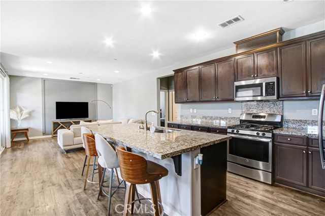 Welcome to this beautifully maintained condo in the highly sought-after College Park community of Chino. Featuring a desirable single-level layout, this residence offers 3 spacious bedrooms and 2 full bathrooms, all thoughtfully designed within an open-concept floor plan. The bright and airy living space flows seamlessly into a modern kitchen complete with stainless steel appliances, granite countertops, and ample cabinetry—perfect for both everyday living and entertaining. Recent renovated carpet, laminate wood flooring, and fresh interior paint, creating a clean, move-in-ready environment. Additional highlights include a generously sized primary suite with a large walk-in closet, two private balconies, and a spacious laundry room with extra storage. Direct garage access. Residents of College Park and Morgan Square enjoy resort-style amenities including pools, spa, clubhouse, gym, parks, sports courts, and scenic walking and biking trails.