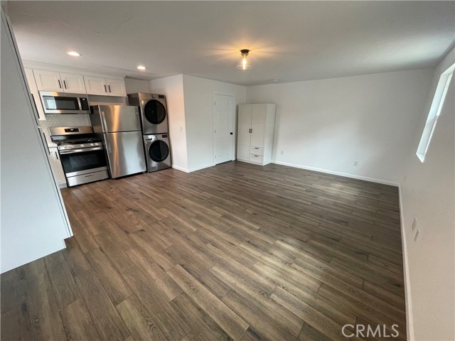 Newly built in 2024, this detached studio ADU sits quietly behind a Mills Act–designated historic home in the heart of the Anaheim Colony Historic District. Private, thoughtfully designed, and full of charm, this back house offers an open floor plan with one full bathroom and modern finishes throughout. The kitchen is fresh and functional with quartz countertops, white tile backsplash, newer cabinetry, stainless steel sink, GE gas stove/oven, GE microwave, and GE refrigerator. An in-unit LG washer and dryer are included. Wood-look tile flooring runs throughout the space, keeping things clean, cohesive, and easy to maintain. The bathroom features a new vanity, mosaic tile flooring, and a ceiling fan with a built-in Bluetooth speaker—perfect for morning playlists or winding down at night. USB and USB-C outlets are installed throughout, along with extra built-in storage. Out back is where this place really shines: enjoy a lush garden setting with an outdoor dining area and firepit, ideal for evening dinners, casual hangs, or quiet nights under the stars. Tenant also has access to EV charging in the alley parking area, a storage shed, and shared backyard space. Street parking is available with permit included. Located near Center Street Promenade, the Packing District, Disneyland, and the OC Vibe, with easy access to local restaurants, breweries, and downtown energy—without losing the neighborhood feel. Available: 6/15 No pets.