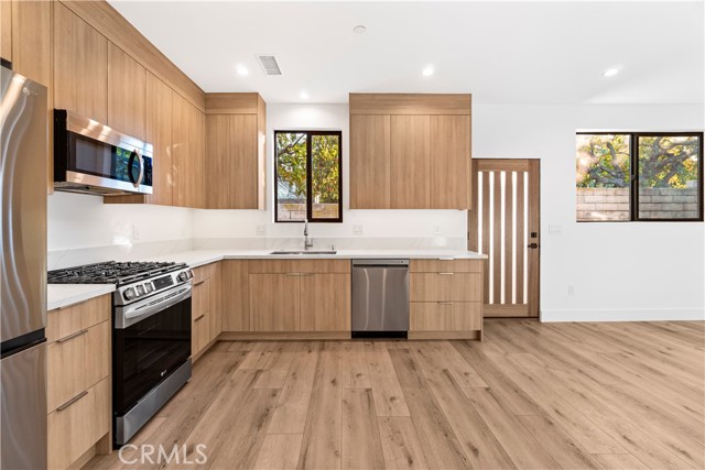 This stunning, 1 Bedroom/1 Bathroom ADU Home in a lovely West Hills neighborhood offers the best of suburban living. With thoughtful details and high end finishes throughout, this beauty feels like a house! Enter through your private access gate to the custom entry door that opens to an open floor plan concept with a full Kitchen and combined dining/living room area. There is even room for an island in the Kitchen! With Custom built kitchen cabinets with efficient organizational touches, soft-close doors/drawers and LG appliances this Kitchen is ready for the chef in you to emerge. the Living Room opens onto your own private back patio and yard with water-efficient artificial turf providing a serene and private outdoor area for relaxing or grilling. The combined Laundry/Linen closet opens from large double doors and is organized with a stackable washer/dryer unit and a custom built shelving system for storage and convenience. The Bathroom is beautifully appointed with upscale finishes and a smart vanity mirror. The Bedroom boasts a custom built 'mini walk-in' closet with finishes that complement the cabinetry and shelving throughout this home. With a private location on a cul-de-sac, located near Chaminade Prep, Malibu Wines, schools and shopping, this ADU home offers modern living in West Hills. See it before it is gone! Available June 1, 2026. Do not disturb Occupants.