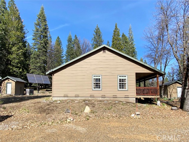 Discover this well-maintained custom 2-bedroom, 2-bath home nestled in the off-grid Mt. Shasta Forest subdivision! Located in Unit 1 and accessed by mostly paved roads, this property offers both convenience and a gateway to the endless outdoor adventures of Siskiyou County. Ideally situated near the historic town of McCloud, McCloud Reservoir, McCloud Falls, and Mt. Shasta Ski Park, it’s the perfect basecamp for year-round recreation. The grounds are immaculately cared for, showcasing park-like beauty and even offering a view of Mt. Shasta from a handmade bench near the entrance. Thoughtfully constructed in 2008, the home features oversized trusses and strategic chimney placement designed to handle heavy winter conditions. Enjoy the oversized covered front deck, built for comfort in all seasons—providing shade in the summer and protection from snow in the winter. The deck is equipped with a propane hook-up and is wired for fans and speakers, making it ideal for relaxing or entertaining. Inside, you’ll find spacious rooms with vaulted ceilings, Rinnai propane heaters, a cozy wood stove, and a propane/electric Dometic refrigerator. The home also features a clawfoot tub/shower and beautiful custom oak cabinetry throughout. Additional improvements include a newer 25-foot shipping container with a reinforced roof, a well house/storage shed, off-grid system shed, solar array, generator, new lithium battery, picnic table, firepit, and horseshoe pit. The seller currently uses Starlink for internet, and the property benefits from good cell service. HOA dues are $500 per year and cover road maintenance and snow removal. This is a rare opportunity to own a thoughtfully designed off-grid retreat in a stunning natural setting. Schedule your private tour today. (Security cameras on site. This is not a drive-by property—please do not visit without an agent.)