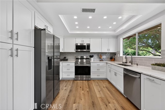 Welcome to 6214 Moonstone, A Stunning Park-like Retreat in the Heart of Alta Loma. This beautifully remodeled 4-bedroom, 3-bathroom home offers 2,743 sq ft of thoughtfully designed living space across three levels, delivering the perfect blend of style, function, and comfort. From the moment you step inside, you'll notice the attention to detail throughout. From the open and versatile floor plan which is ideal for young and growing families, offering generous living areas that flow seamlessly from one level to the next. Entertaining is effortless here, with expansive spaces designed to host gatherings of any size indoor and out, including a unique great room with a buffet bar and refrigerator perfect for entertaining. Whether it's a casual family night in or a weekend get-together with friends, this home rises to every occasion. The updated kitchen features modern finishes and ample space to inspire your inner chef. The spacious bedrooms provide peaceful retreats for every member of the family, including 1 Bedroom and 1 Bathroom on the main level, and a primary suite offering a serene escape with mountain views at the end of the day. The bathrooms have been renovated with contemporary touches throughout. Located in the highly desirable Alta Loma community of Rancho Cucamonga, this home sits within close proximity to top-rated schools, scenic hiking trails, local dining, shopping, and easy freeway access, offering the best of Southern California living. Just pack your bags and settle into the home you've always envisioned!