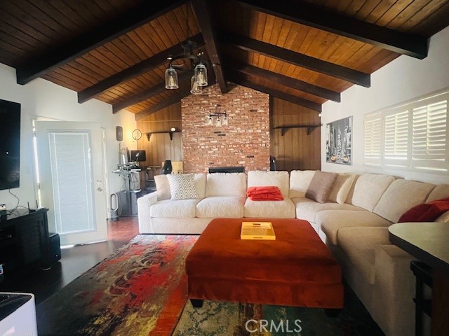 Charming single-story home located on a quiet cul-de-sac in a prime location near shopping, restaurants, and parks. Features an open floor plan with a spacious family room, open beam ceilings, and a brick fireplace with raised hearth. Updated kitchen with modern finishes. Plantation shutters and newer windows throughout provide great natural light. Laminate and tile flooring throughout—no carpet. Indoor laundry room for added convenience. Enjoy outdoor living with a covered patio. Detached two-car garage plus a long, gated driveway offering additional parking and privacy. Well-maintained home with great functional layout.