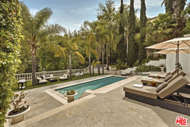 Grand Mediterranean Italian villa estate mansion on nearly one acre offering timeless elegance and rare privacy. Approximately 5,3458 square feet of refined living space plus a versatile 500 sq ft bonus suite perfect for studio, theater, or private gym. Formal dining room with soaring ceilings and skylights in French Versailles style, expansive chef's kitchen with skylight, and every bedroom is a full suite with private bath. Grand master suite features sitting area, balcony, and working fireplace. Freshly completed garage and dedicated laundry room. Sprawling backyard with exceptional views on nearly one acre of flat. Offered furnished at $19,995/month for long-term lease. Short-term lease available at higher rate.