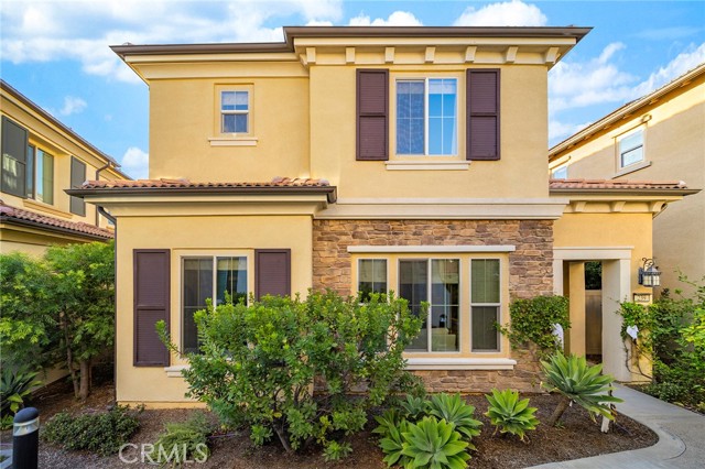 Gated Community!Highly upgraded Model Home with four bedrooms, three bathrooms and a roomy loft.There is one bedroom with a bathroom downstair. This model home features upgraded built in cabinetry, kitchen appliance, wallpaper and upgraded flooring throughout. The kitchen features an over sized island, with quartz counter tops and upgraded back-splash. The bathrooms feature multiple upgrades including floor to ceiling stone in the shower, beveled mirrors, upgraded counter tops and tub decking. The outdoor living area is complete is pavers and a water feature. Too many features to list, this model is a must see with all the furniture and staging including! Camden Square is a gated community, comprises of pool, spa, BBQ, Playground, a tot lot and a recreation center. It is located conveniently next to shopping, restaurants, entertainment and easy access to freeways to get the best private school in OC. This home is within the Saddleback Valley Unified School District. Close to schools.